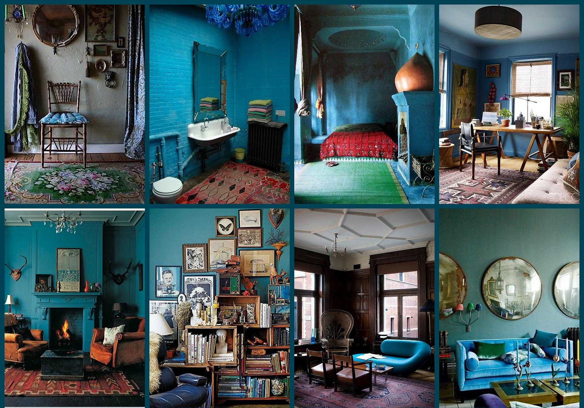 Синий цвет в интерьерах в стиле бохо