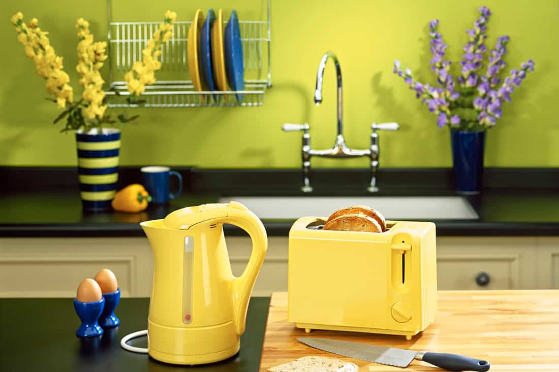 The yellow appliances are an amusing way to add some bright color into the design. You can even tuck the appliances away if you don’t want too much color.