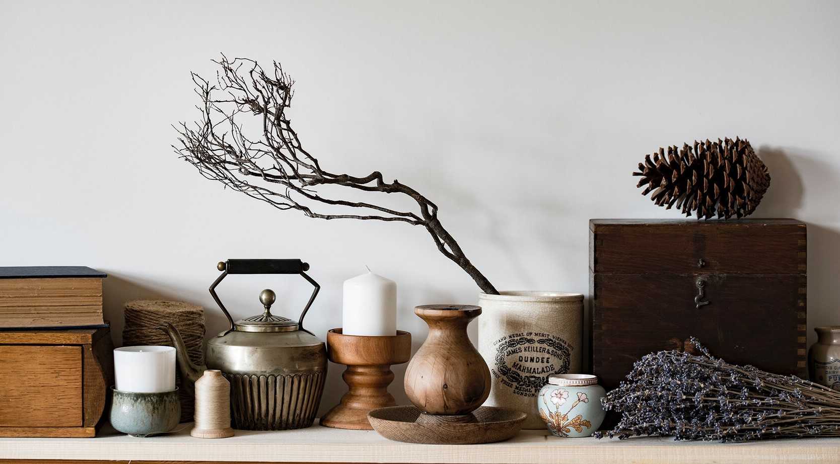 - Интерьер хорошо дополняют предметы не совсем правильной формы, неприметные, потемневшие, подверженные воздействиям времени.