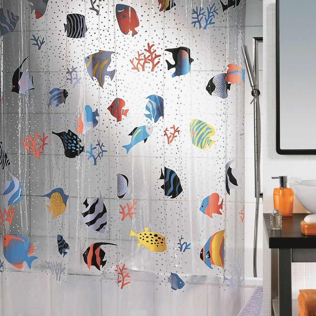 Поливинилхлорид (он же ПВХ или PVC) — это обыкновенная пластмасса, которая представляет собой прозрачную клеенку (также могут добавляться красители, и наноситься рисунок). Это самый экономный вариант материала для шторки в ванную, который не подлежит стирке или чистке, а со временем на них образовываются белые кальциевые разводы. Однако, сочетание цены и качества таких шторок разумно и они вполне подходят для: