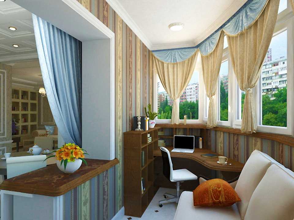 - окно единого помещения становится больше (это вся ширина и высота лоджии) и сюда проникает больше естественного света; можно предусмотреть различные варианты оформления окон;