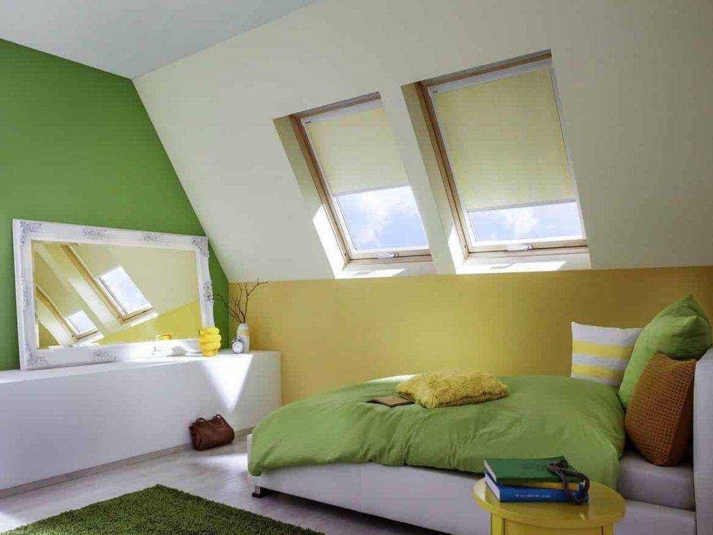 Римские шторы – хороший вариант для небольшой мансардной спальни