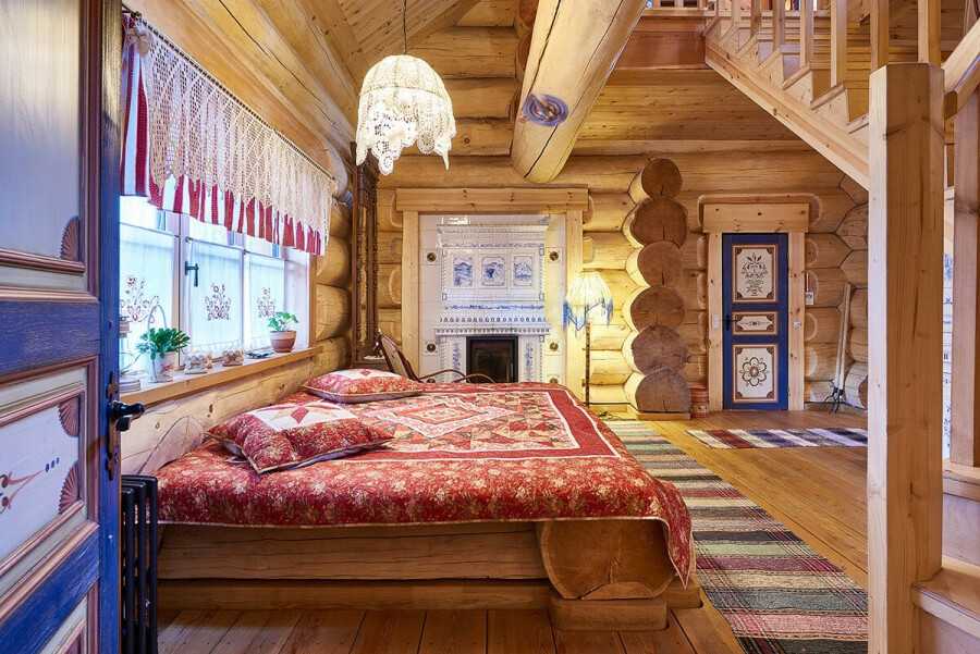 Гостевую комнату можно оформить в русском стиле. Вид «изба» представляет собой: