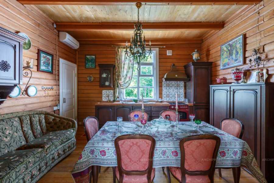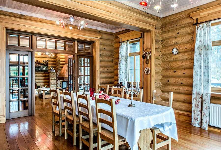 - все современные материалы стоит исключить — преобладать должно дерево, вся мебель должна быть из него;