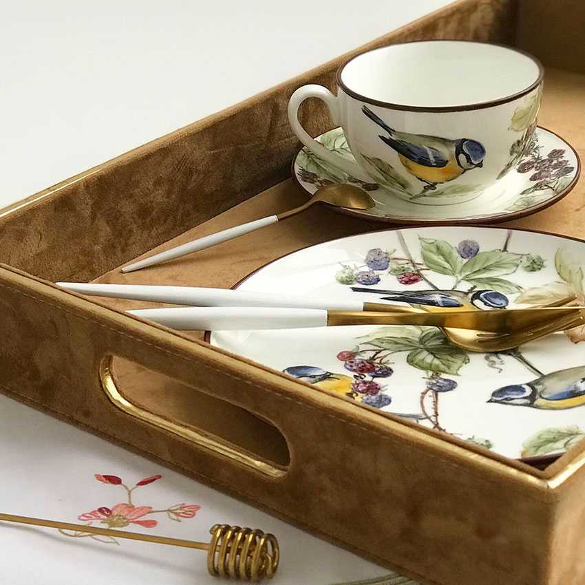 Кроме этого, в расширенные наборы для чаепитий могут входить десертные тарелки, блюда для подачи десертов, например, тортница, конфетница, а также предметы для изысканной сервировки завтрака, бранча, например, доска для сыра, подносы для утренней выпечки, подставка для яиц, ваза для фруктов и т.д, кому как нравится. Под заказ может быть расписано любое количество предметом.