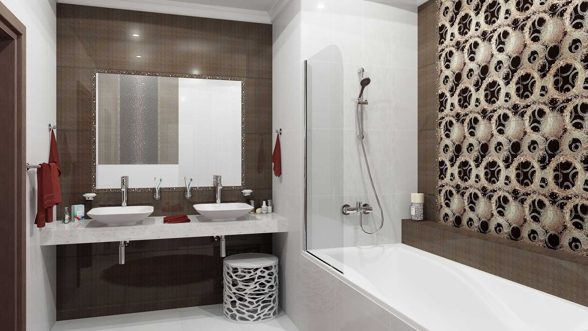 Монохромная простота металла — оптимальный выбор для лаконичного дизайна. Рядом с белой керамикой, зеркалами, прозрачными перегородками серый цвет будет выглядеть ненавязчиво и очень современно. В этой спокойной гамме будет уместна даже лоскутная плитка с различными узорами. Также красоту серого подчеркнет хромированная фурнитура: краны, мебельные ручки, рамы и плафоны.