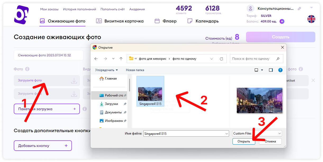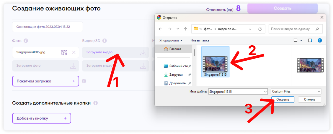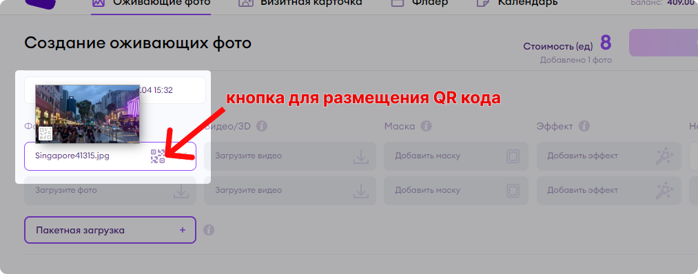 Нажмите на ячейку Фото и выберите нужное изображение. В дальнейшем будет воспроизводиться видео при наведении камеры телефона на QR код этого заказа и затем на это изображение