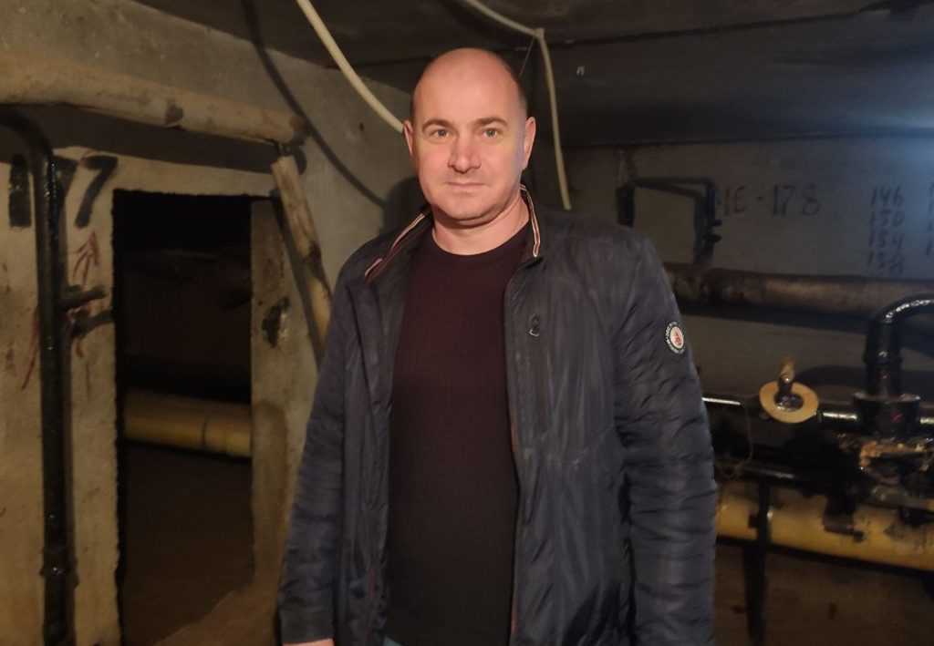 Валерий Ткаччев показывает чистоту и сухость подвалов, а также произведенную замену труб