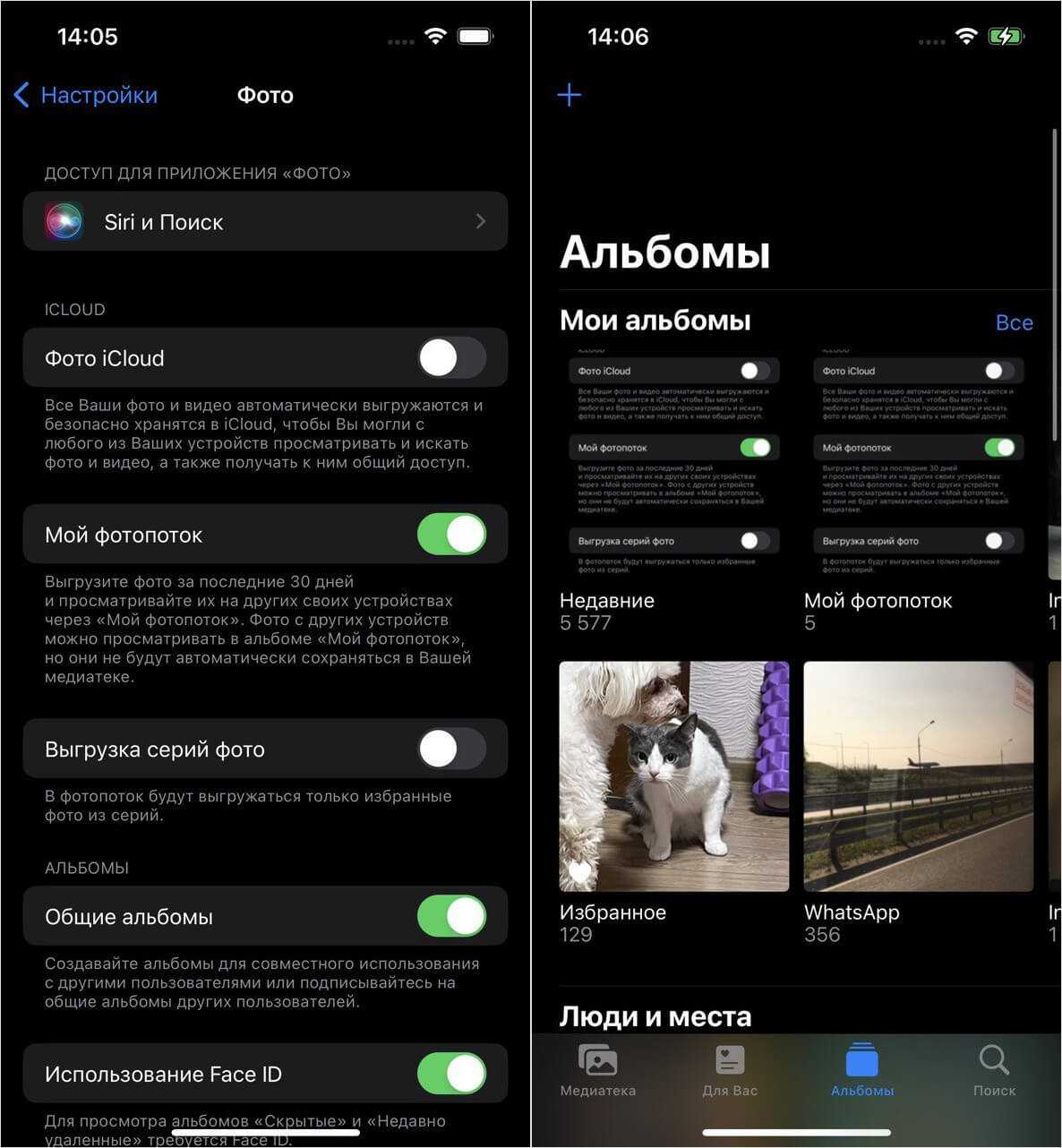 Главная фишка функции Мой Фотопоток в том, что она загружает изображения за последние 30 дней и отображает их на других устройствах. При этом оригиналы хранятся только на одном гаджете, на который они были сделаны, а на других качество снижается за исключением Windows и Mac. Для синхронизации используется iCloud, поэтому если функция включена на разных устройствах с одним Apple ID, то фото и видео будут отображаться на них в отдельном одноименном альбоме.