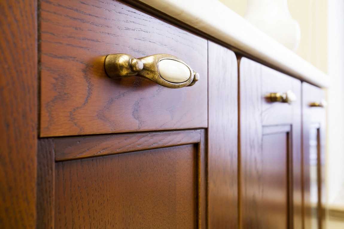 - Классический стиль. Классика требует высоких потолков, простора, воздуха и света. В тёмной и небольшой кухне этот стиль создаст угнетающее настроение. Классика – это латунная или бронзовая фурнитура, натуральное дерево, природные тона и прямые линии, филёнчатые фасады.