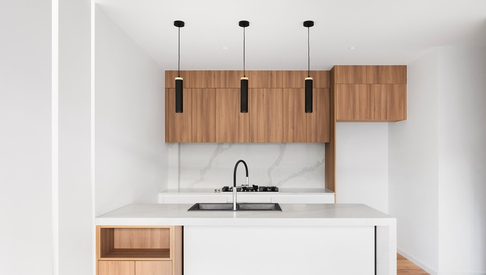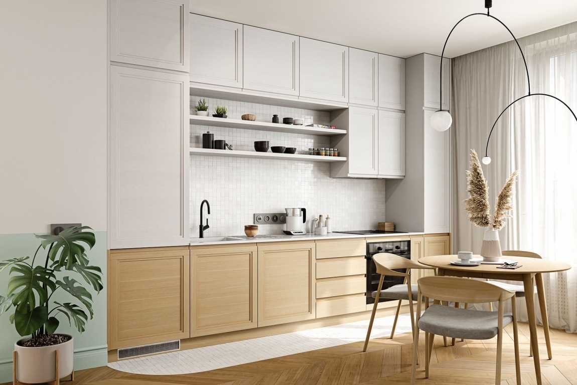 Тут с большего вкусовщина, но есть один универсальный вариант — белая кухня с деревянной столешницей. Это идеальный вариант по комбинации внешнего вида, цены и практичности. А ещё их практически нереально испортить. Серьёзно, многие пытались и делали всё остальное просто ужасно, но получалось всё равно как минимум неплохо.