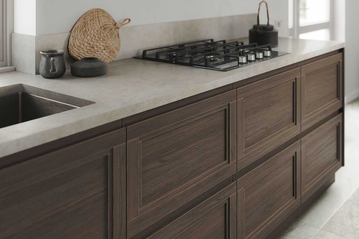 Казалось бы, на фасадах экономить не стоит, ведь они занимают больше всего визуального пространства на кухне, принимают на себя всю нагрузку внешней среды и дают понять, к какому «классу» принадлежит проект.