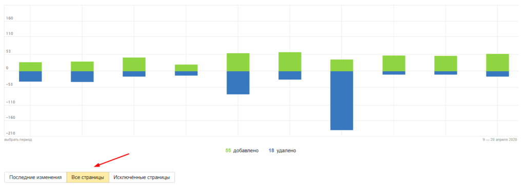 - Найдите и активируйте вкладку «Все страницы». Далее выгрузите отчет в удобном формате.