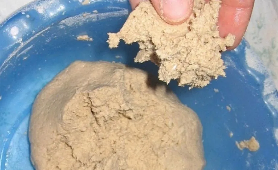 Ингредиенты берут в соотношении 1:4:1. В полученный состав добавляю воду, вымешиваю тягучий раствор. Резиновым шпателем массу глубоко и равномерно распределяю по узким прорехам. Сырье быстро сохнет, не трескается и долго служит.