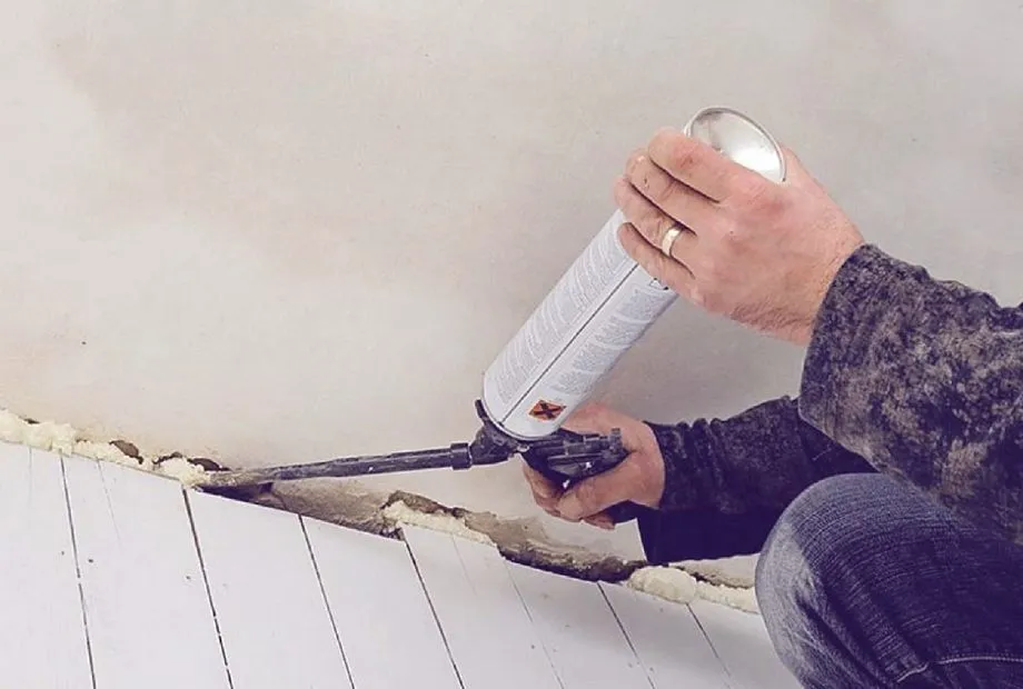 Перед процедурой напольную планку рекомендую демонтировать и изучить объем работ. Габариты дефектов между полом и стеной могут быть намного крупнее, чем видно через плинтус. Отсутствие физической преграды облегчит процедуру.
