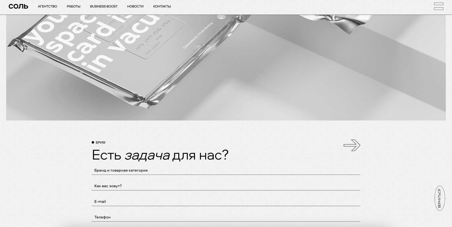 В самом конце страницы с кейсом на сайте креативной студии — вопрос и форма для обращенияСкриншот: solcreative.ru / Skillbox