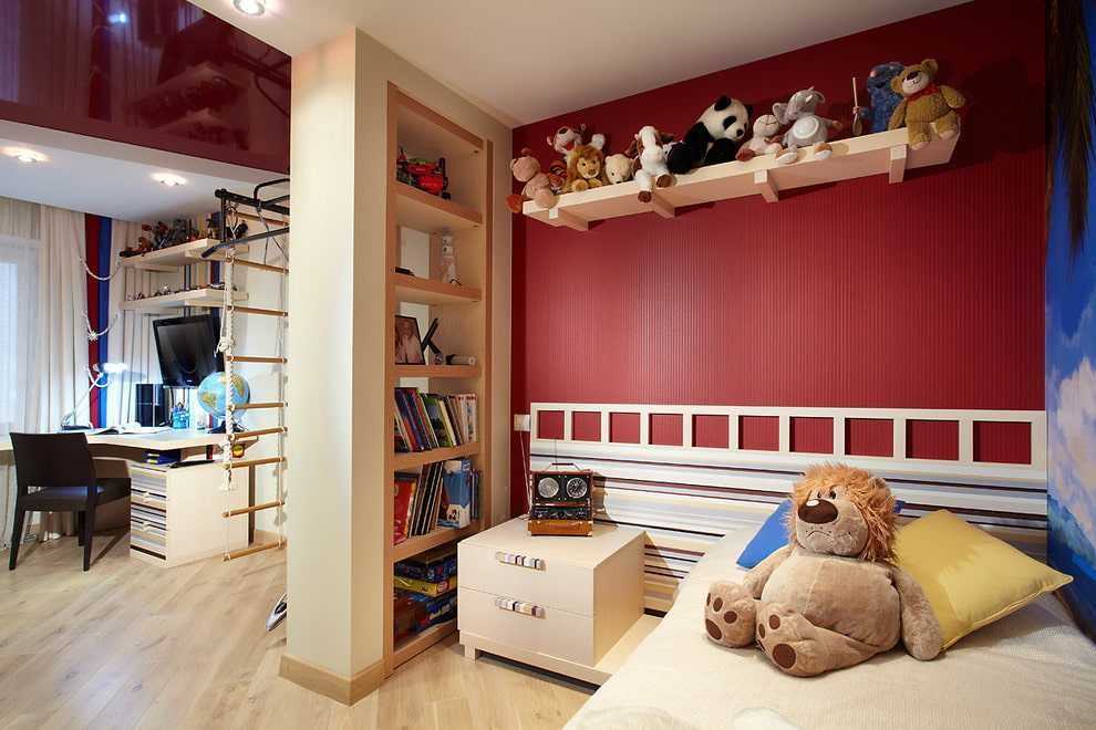 Большинство детских комнат состоит из большого количества зон (спальная, игровая, рабочая, спортивная и пр.), поэтому их проекты требуют серьёзного отношения к зонированию. Различные перегородки в детских – не редкость.