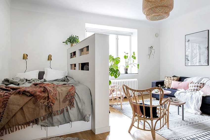 Спальня, совмещенная с гостиной: разделение стационарными и мобильными перегородками