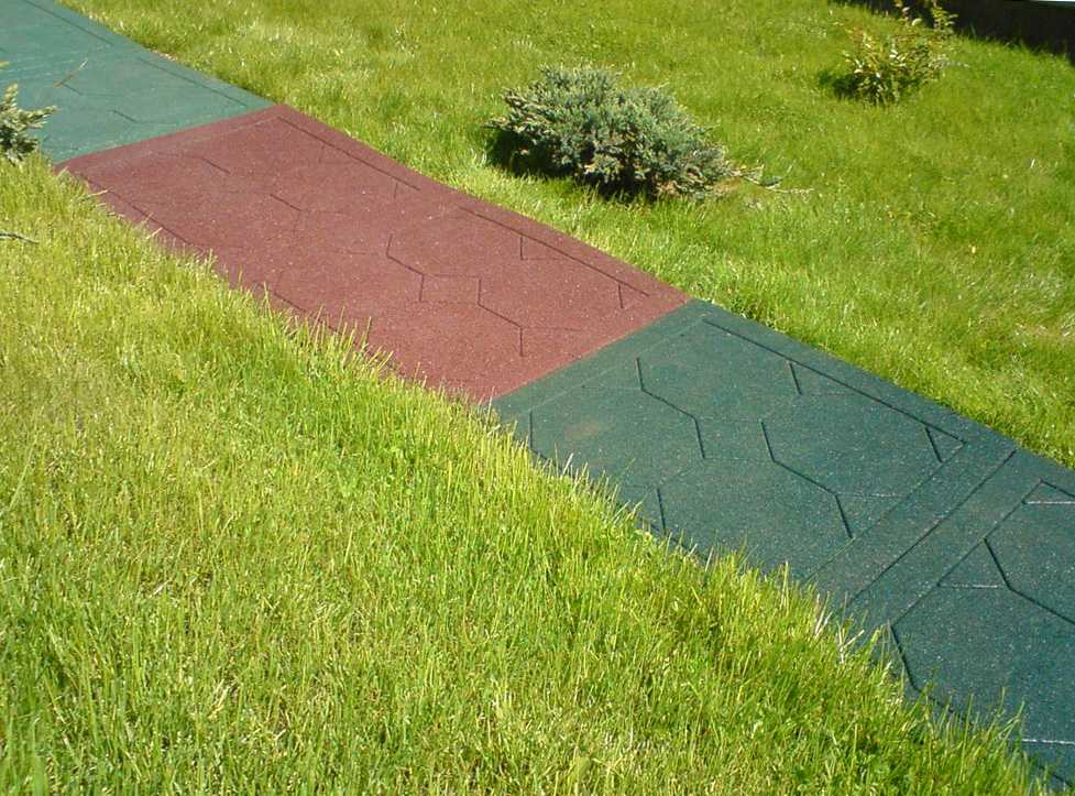 Можно сделать садовые дорожки, уложив резиновый настил прямо на грунт. Для этого используется плитка толщиной 30-50 мм или брусчатка – 80 мм. Необходимо подобрать плитку со втулками в комплекте. Грунтовое основание требует такой подготовки: