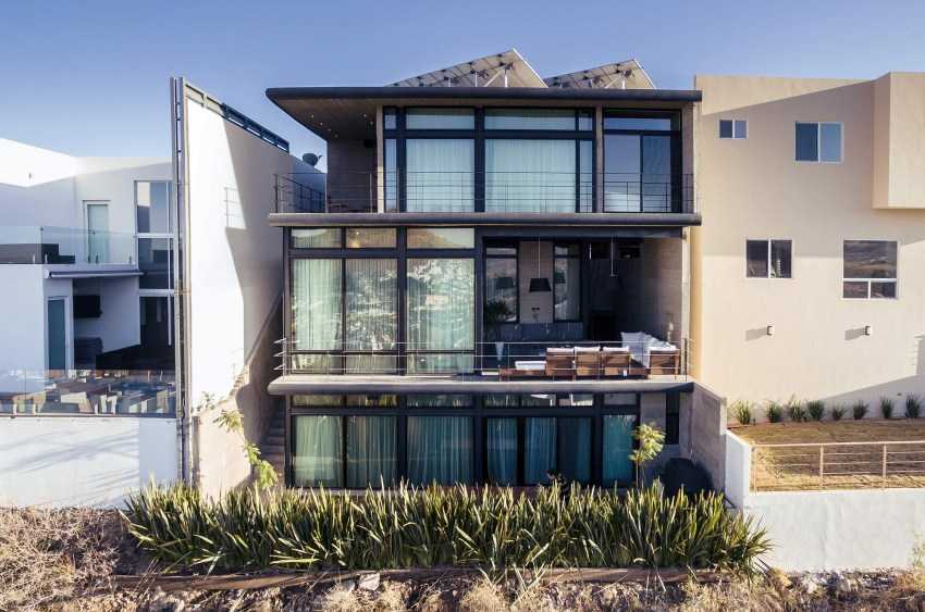 - Узкие, обычно арочные окна. В современном исполнении их заменили на панорамные.