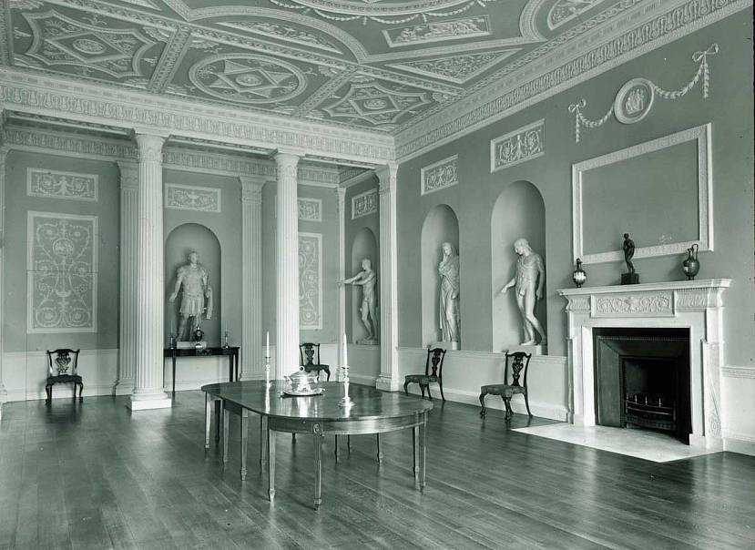 В начале XIX века типичным жилищем знати был усадебный дом или городской особняк. Здесь, как правило, жила большая семья и многочисленная прислуга. Парадные залы обычно располагались на втором этаже и представляли собой анфиладу гостиных, будуар и спальню. Жилые помещения размещались на третьем этаже или антресолях и имели низкие потолки. Прислуга жила на первом этаже, здесь также находились служебные помещения. Если дом был двухэтажный, то жилые комнаты, как правило, были на первом этаже и шли параллельно служебным помещениям.