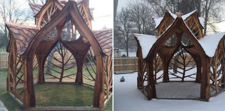 Изготовить каждую деталь самому сложно. Поэтому такие сооружения часто продаются сборными с уже подобранными по размеру сегментами. Мастерами такая конструкция собирается быстро и легко.