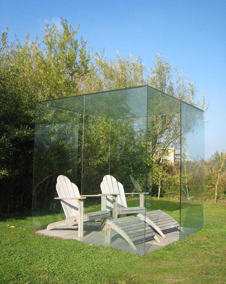 Важно! Вокруг полностью стеклянной беседки должен быть красивый пейзаж, иначе находиться внутри будет некомфортно