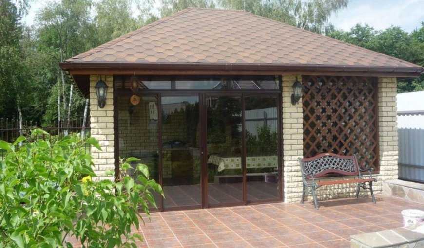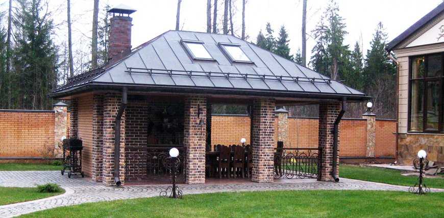 Это прочный и надежный материал для постройки. С помощью данного сырья вы сможете создать беседку на долгие годы. Располагать такой объект нужно на крепком фундаменте. Может быть ленточное или монолитное основание. Большинство использует такие беседки в качестве летней кухни, места для отдыха с шашлычницей.