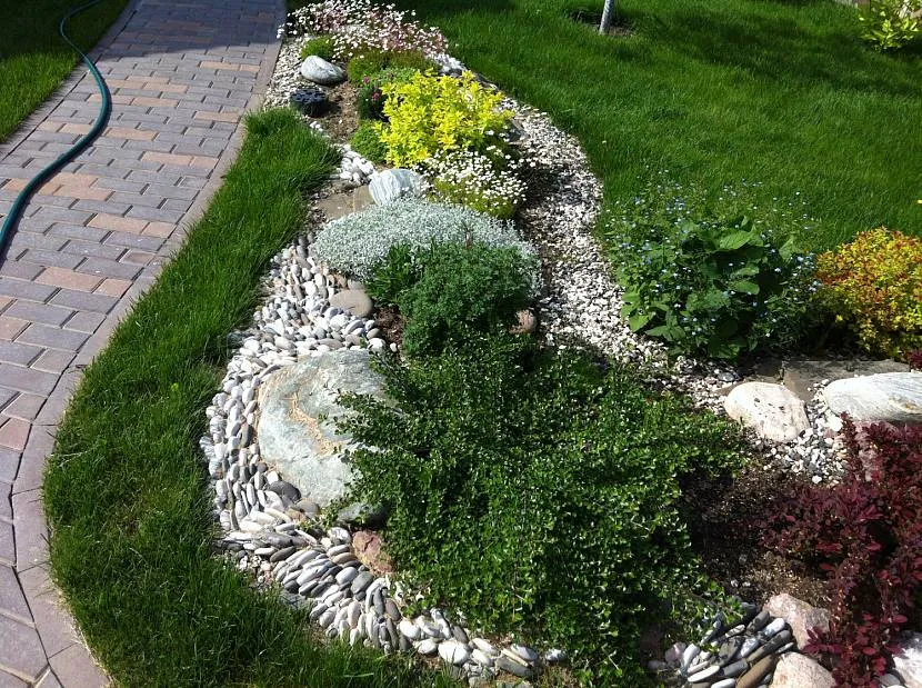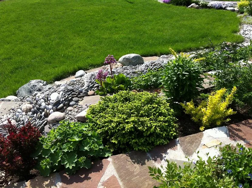 Сухой ручей проходящий сквозь клумбу — модная тенденция в ландшафтном дизайне