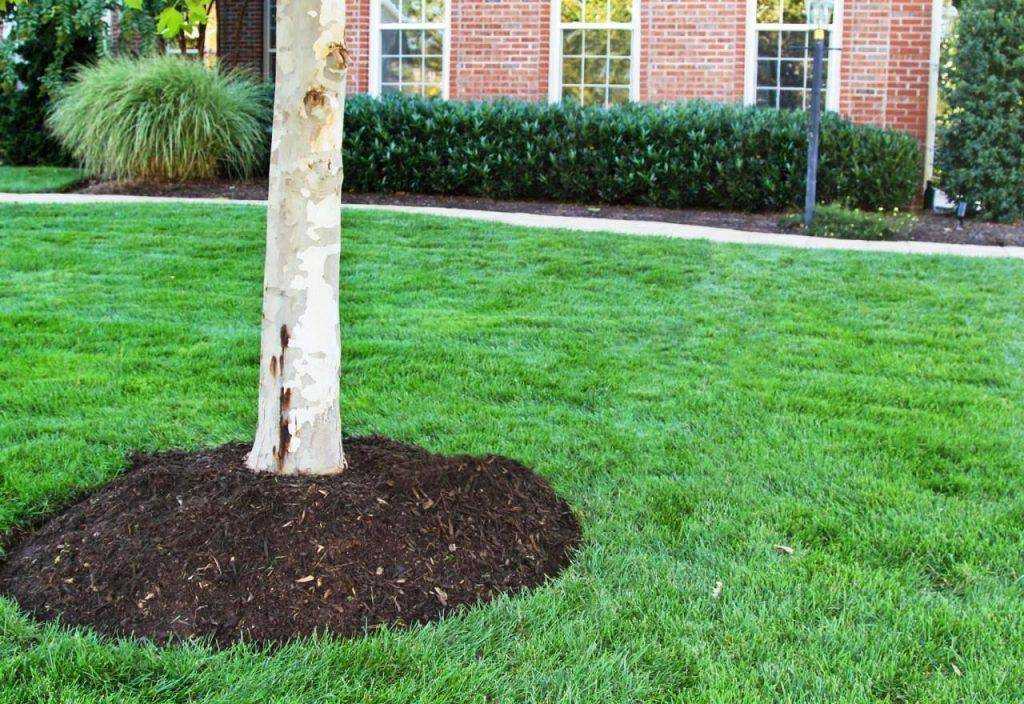 При обработке приствольных кругов, между стволом дерева и краем области обработки мульчей должно быть расстояние от 1.5 до 3 м